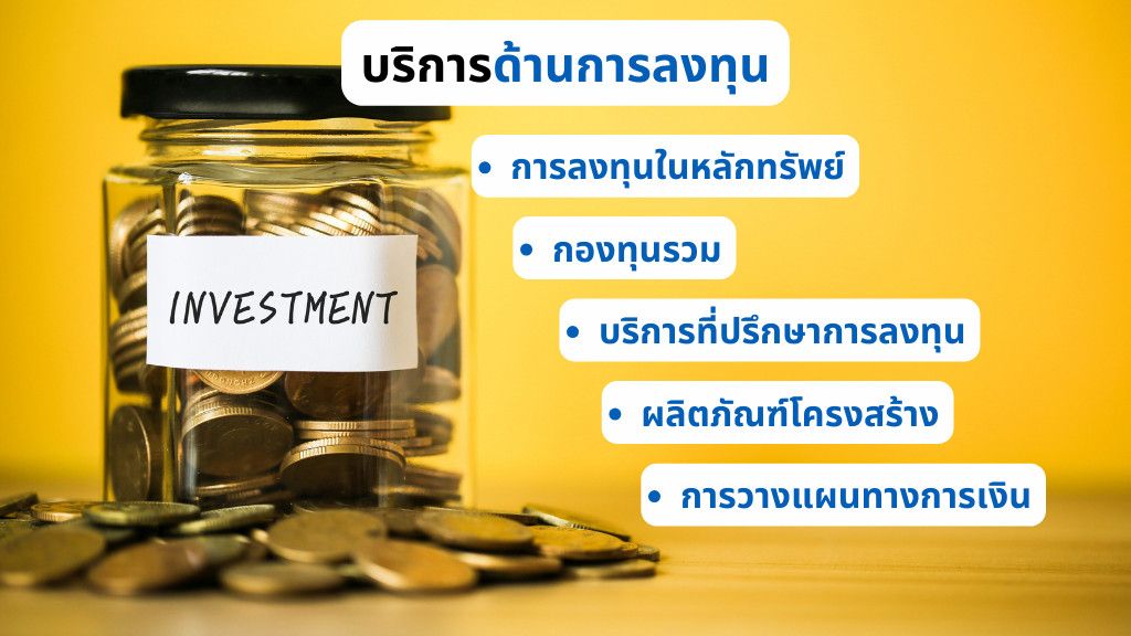 - บริการตลาดทุน : นำเสนอบริการสำหรับการระดมทุนผ่านตลาดทุน เช่น การออกหุ้นและตราสารหนี้