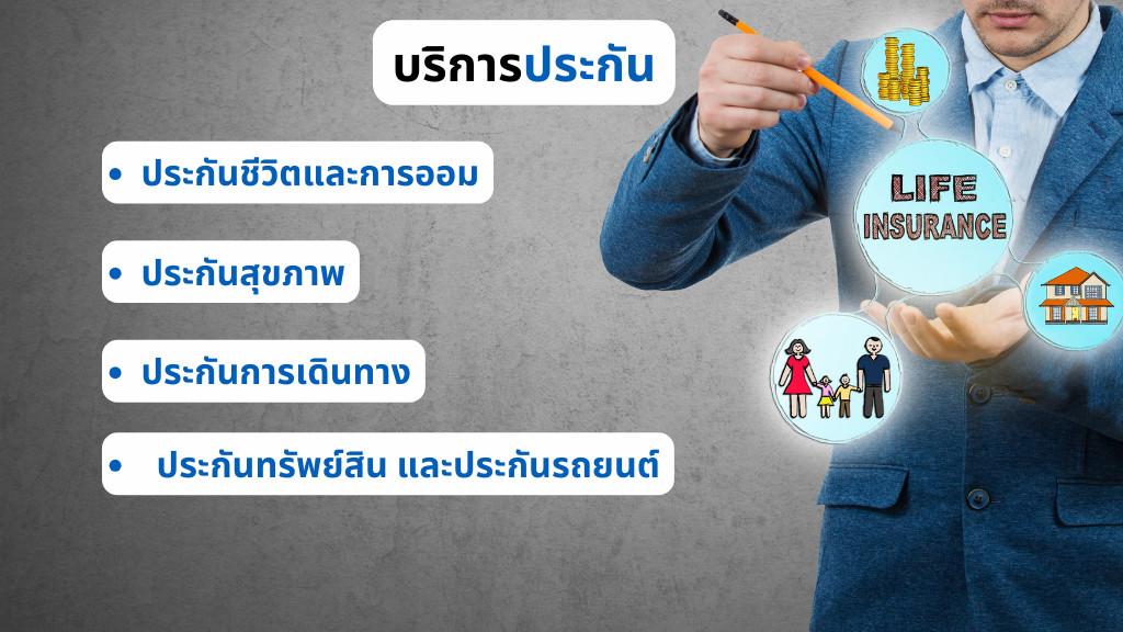 - บริการประกันภัย : บริการประกันภัยสำหรับองค์กร เพื่อคุ้มครองจากความเสี่ยงที่อาจเกิดขึ้นในการดำเนินธุรกิจ